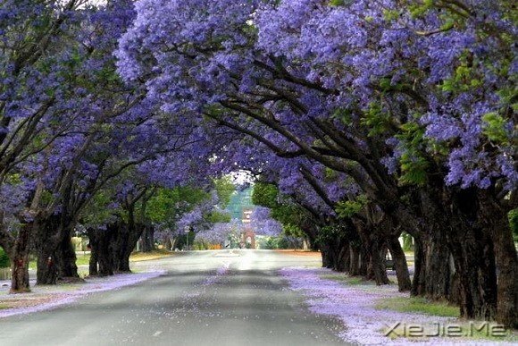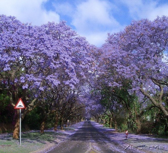 南非的蓝花楹路,从约翰内斯堡延伸到比勒陀利亚。约翰内斯堡是南非最大的城市,栽种了1000多万棵树,拥有世界上面积最大的人造森林。