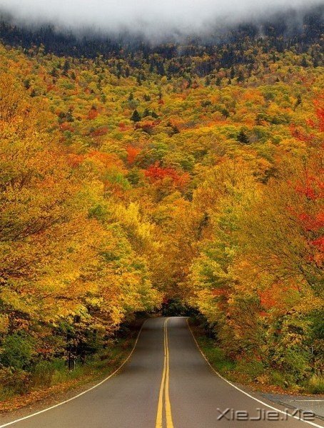 美国佛蒙特州立公园的秋叶隧道,因秋季时景色最为美丽而得名。随着秋季的到来,两旁的树叶被染成彩虹色,仿佛一幅绚烂的油画。