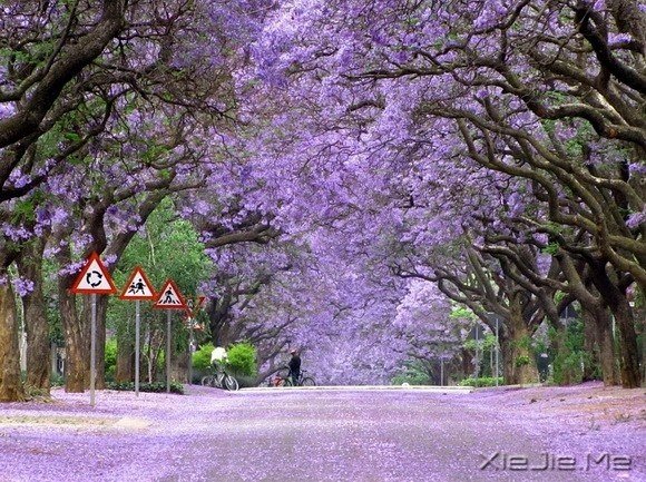 南非的蓝花楹路,从约翰内斯堡延伸到比勒陀利亚。约翰内斯堡是南非最大的城市,栽种了1000多万棵树,拥有世界上面积最大的人造森林。